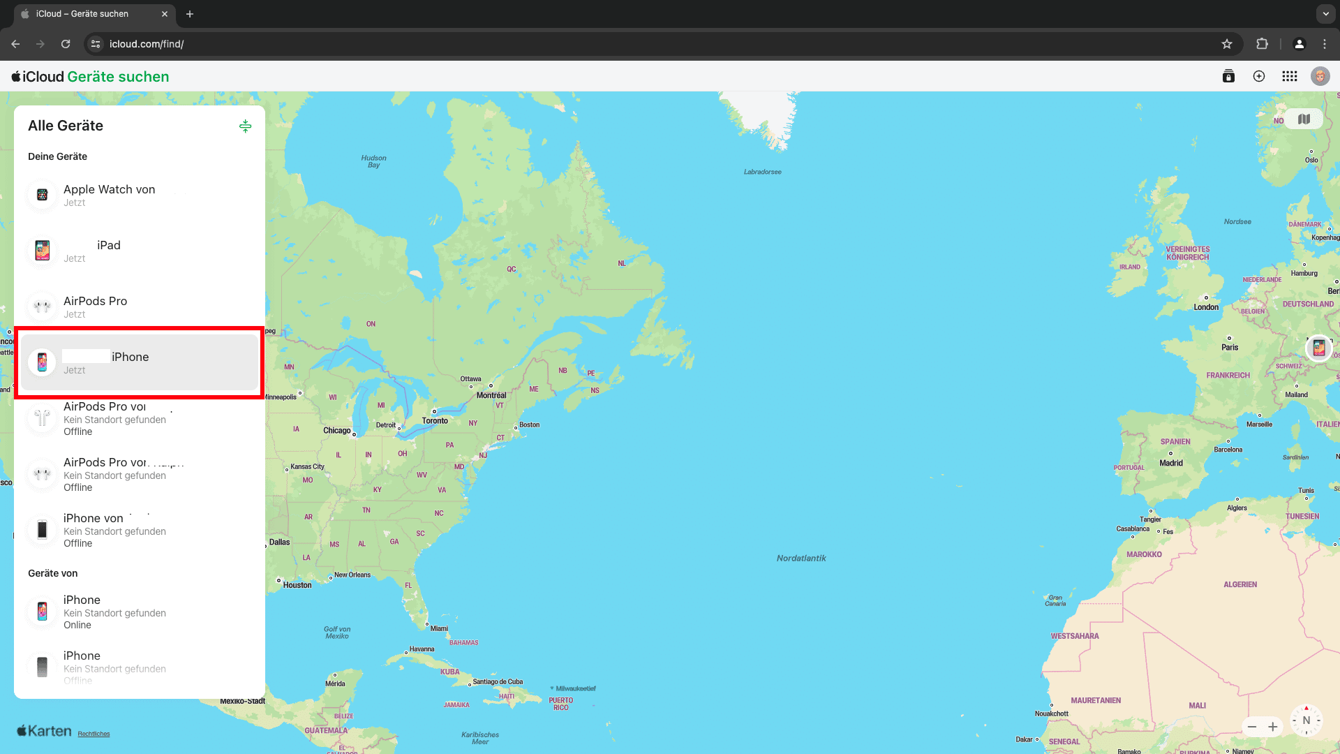 Wo ist? auf iCloud.com deaktivieren