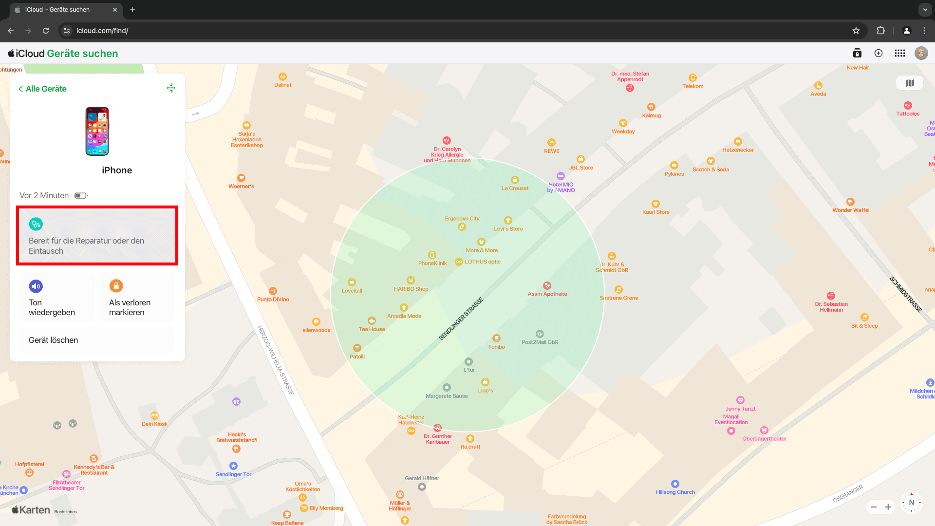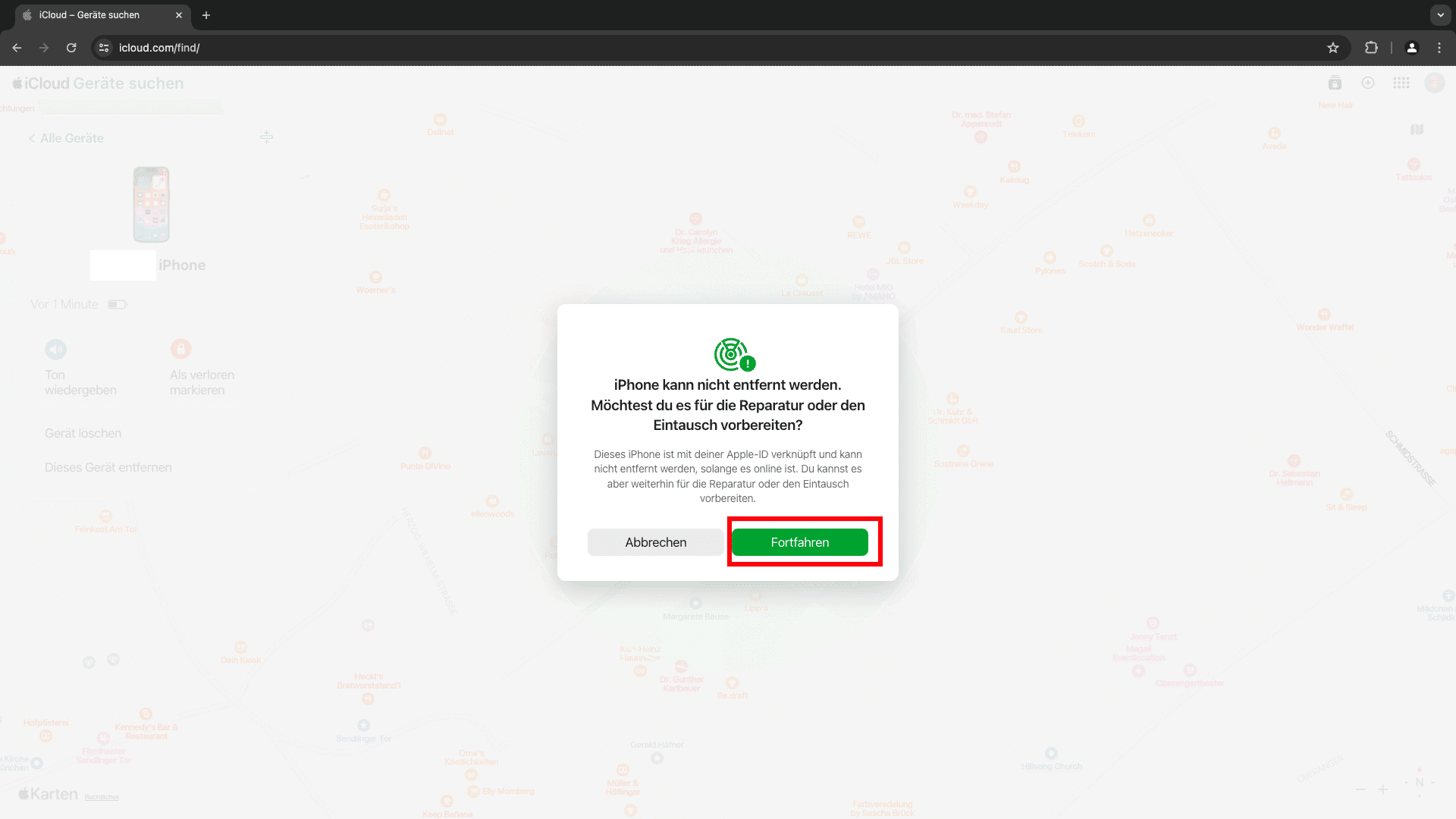 Die iPhone-Suche ist jetzt deaktiviert und sie können ihr Gerät vorbeibringen.