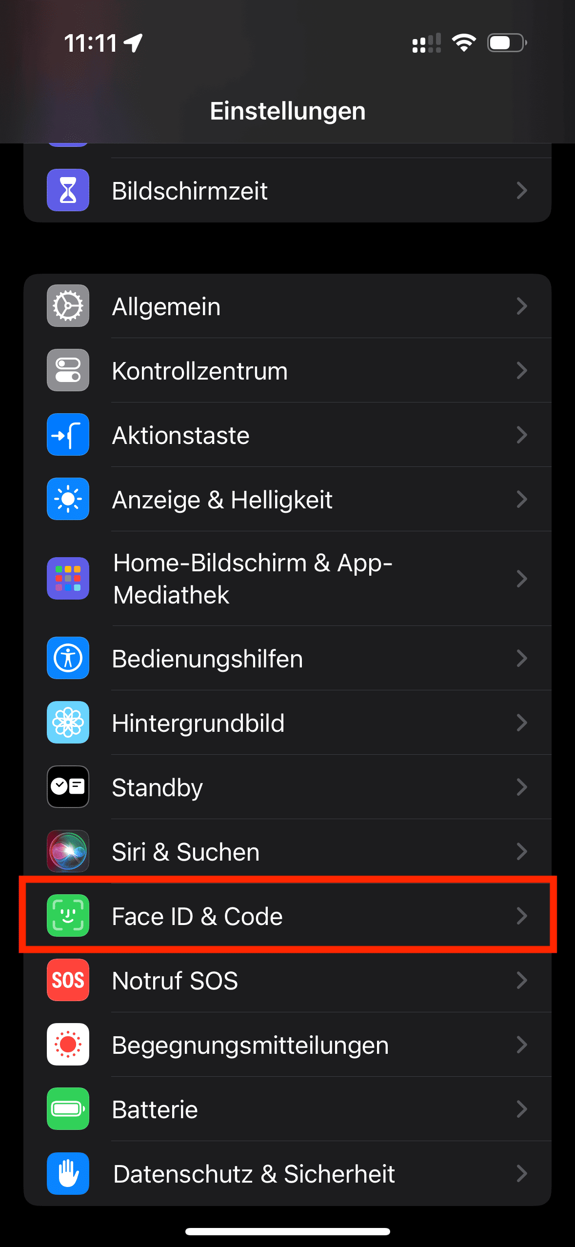 2: Navigieren Sie zu Face ID & Code