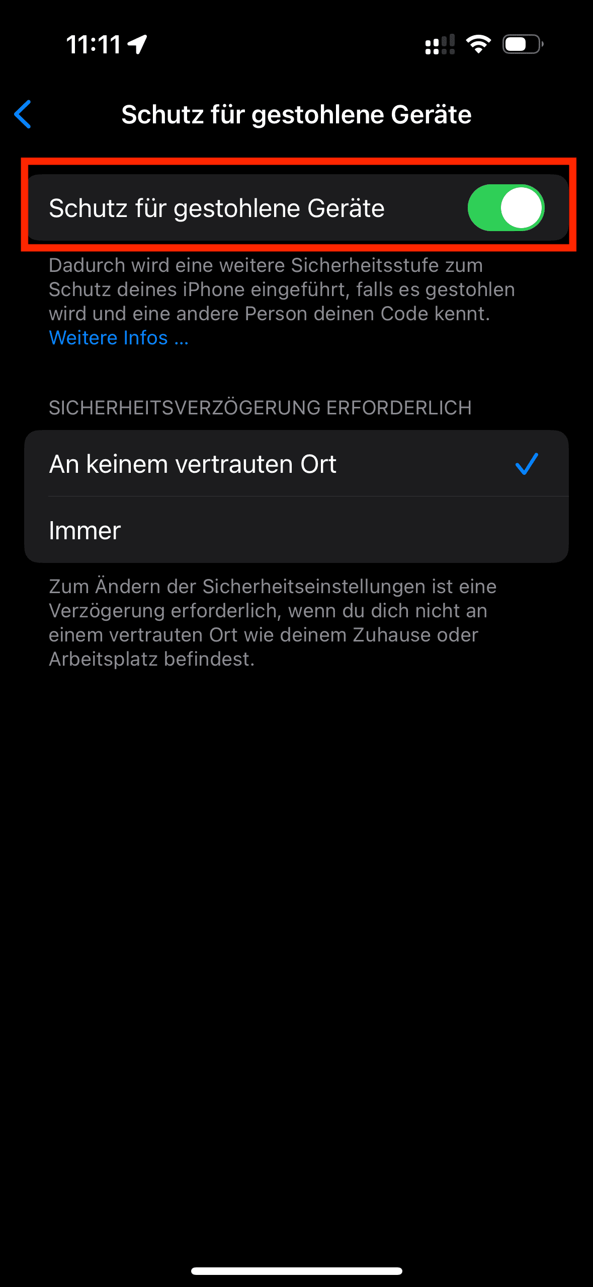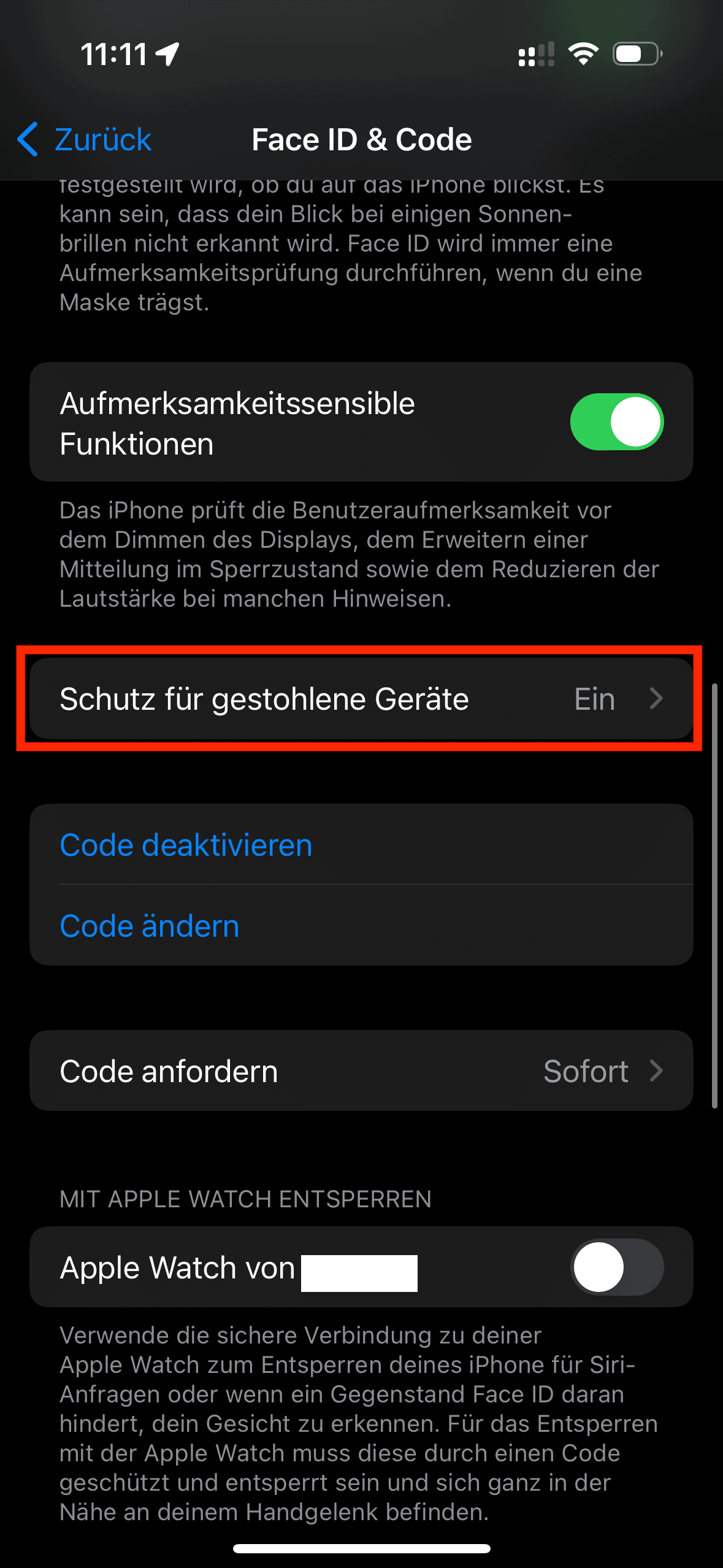 3: Navigieren Sie zum Punkt Schutz für gestohlene Geräte