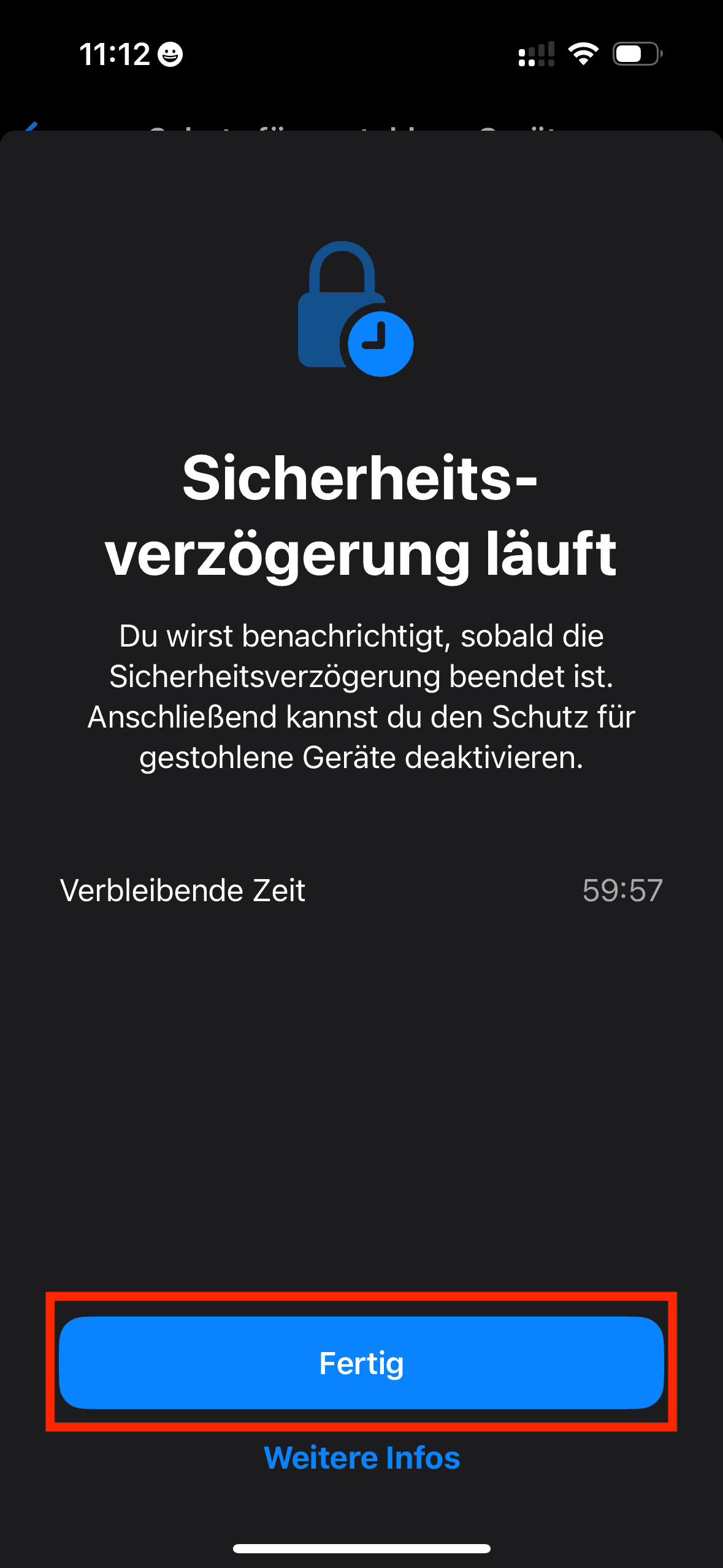 6: Ist die Zeit abgelaufen, wiederholen Sie Schritt 1 bis 4 oder tippen auf die Meldung.