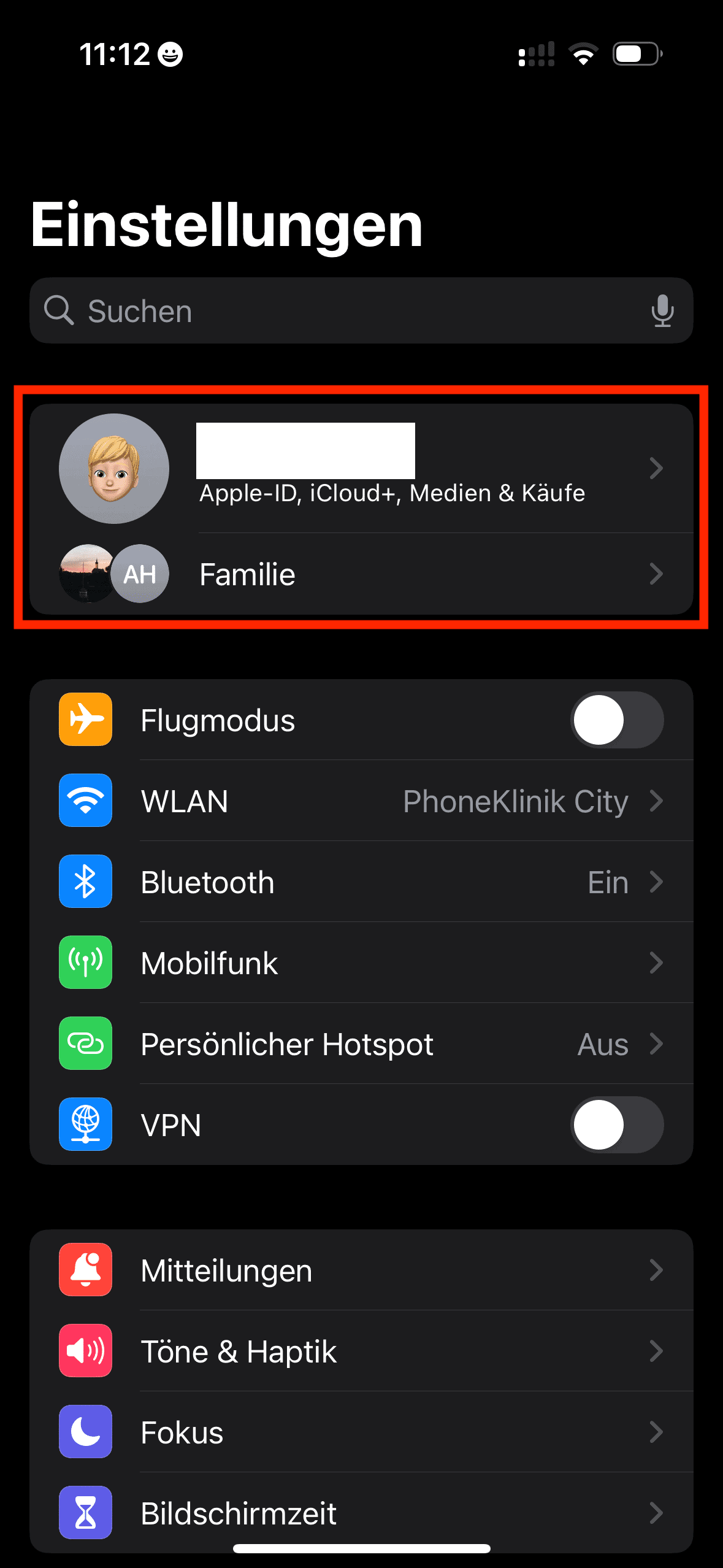 7: Öffnen Sie die Apple ID Einstellungen